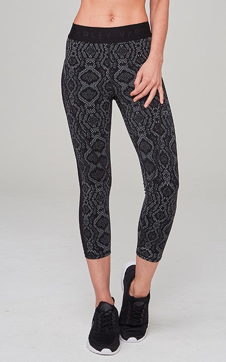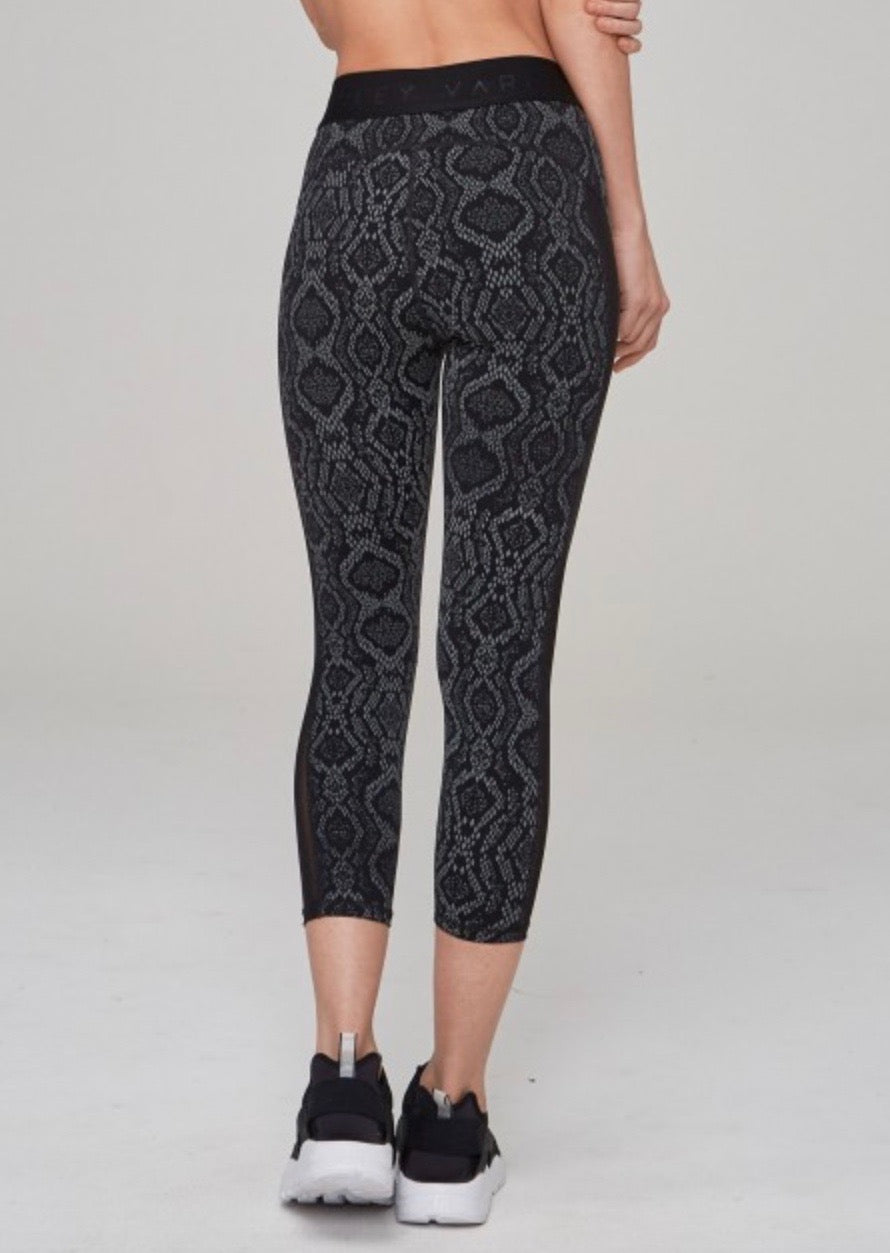 The Alden by Varley is a crop legging featuring mesh detailing down the sides of each leg as well as a branded "Varley" waistband.