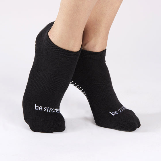 Whether it's barre, pilates, yoga or dance you will love having some inspiration on your sticky socks. Be strong written on your toes when you look down and on the bottom of your feet for glimpses in the mirror...you won't forget!