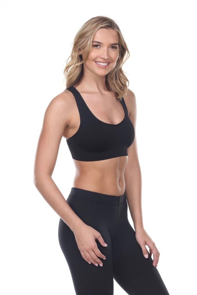 The Bedford Bra features Phat Buddh'a signature seamless construction with moisture wicking fabric and a super soft interior for ultimate comfort. Super stretch design with solid medium support has removable pads and a racerback with cute cutout hole detail. One size fits most.