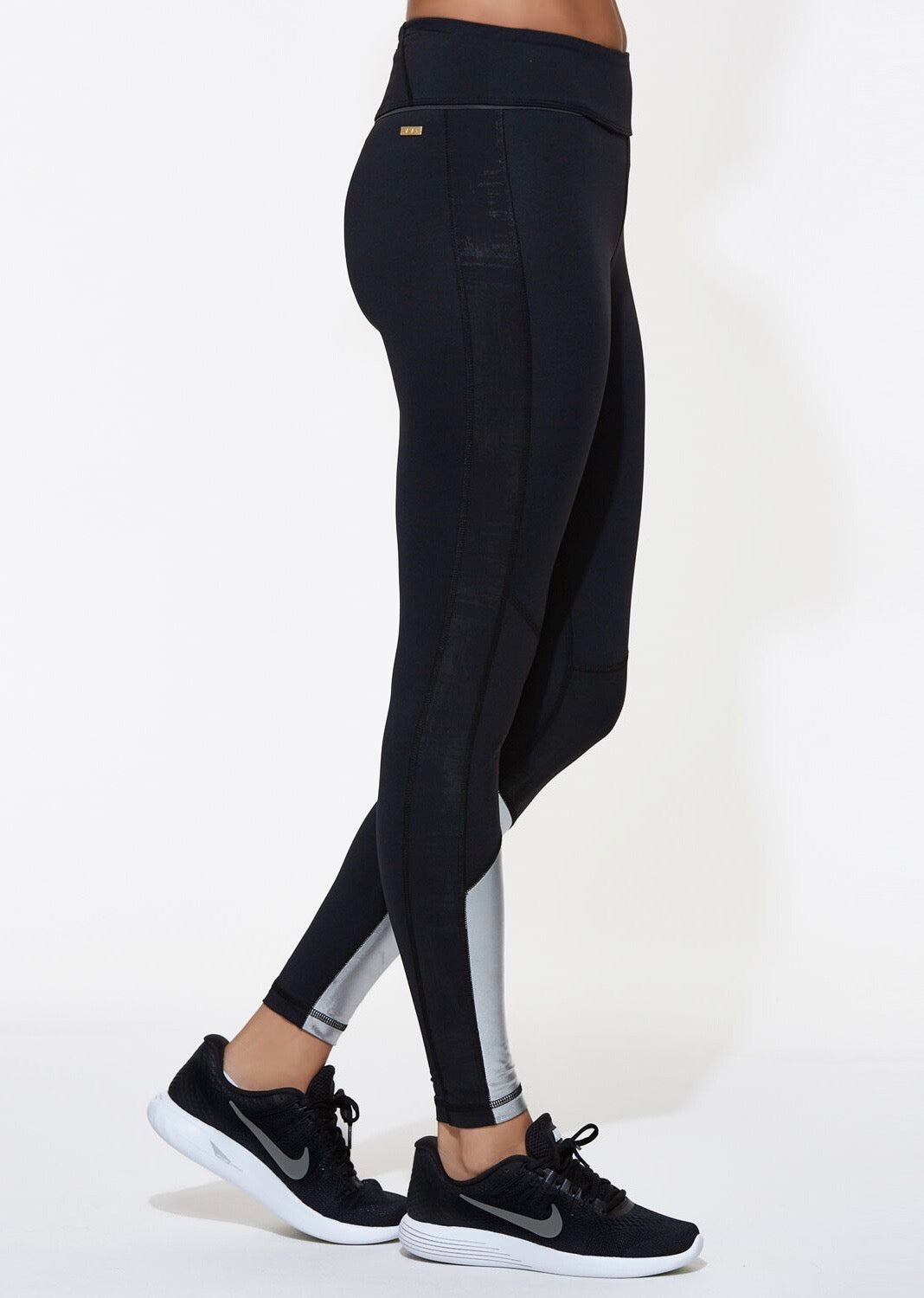 The Blocked Tight by Alala will up your game with a little silver flash. Quick dry slick lightweight fabric, beautiful detailing Alala is known for, brushstroke pattern accents, and metalic silver calf detailing combine for a beautiful finish. Hidden pocket in super supportive power mesh waistband. We can't get enough of Alala's detailing...lovely and elegant.