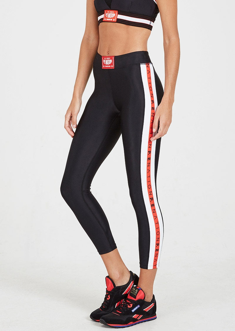 Designed with your workout in mind, the Brawler Legging by PE Nation is the ultimate all-rounder. With all the qualities you need in a high impact leg, the Brawler offers a mid-rise waist, 7/8 length and a flattering fit that contours to your body like a second skin. The P.E sports patch and contrast stripe down one leg adds a sportsluxe element to a sleek active must-have. Mid-rise with jacquard elastic for comfort. Flatlocked seams for increased strength and durability. Anti-pilling and quick drying. Zero transparency. Gusset for comfort and mobility. Sweat wicking properties for greater absorbancy and breathability. Pair with the Left Hook crop for A+ results.