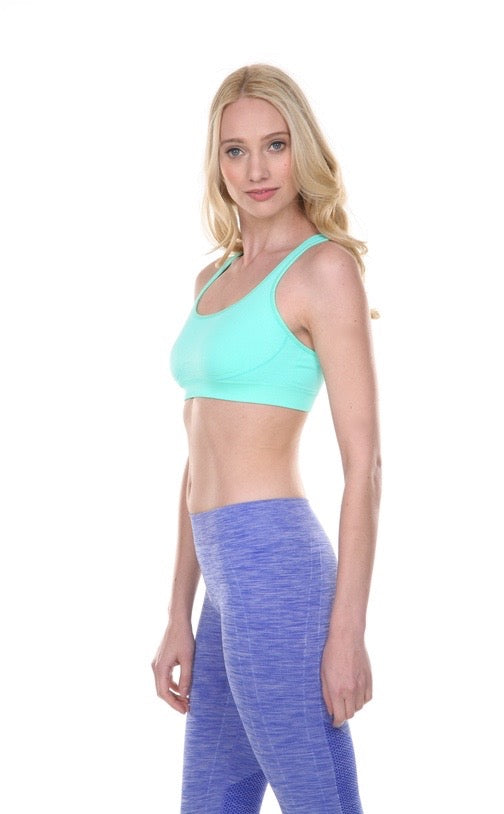 This light-support, ultra comfortable seamless sports bra by Body Glove is constructed with a racer style back and adjustable elastic straps for versatility and better range of motion. Its moisture-wicking, breathable character making it an ideal sports bra for layering and a great piece for a variety of activities from Yoga to Pilates and more. No padding.