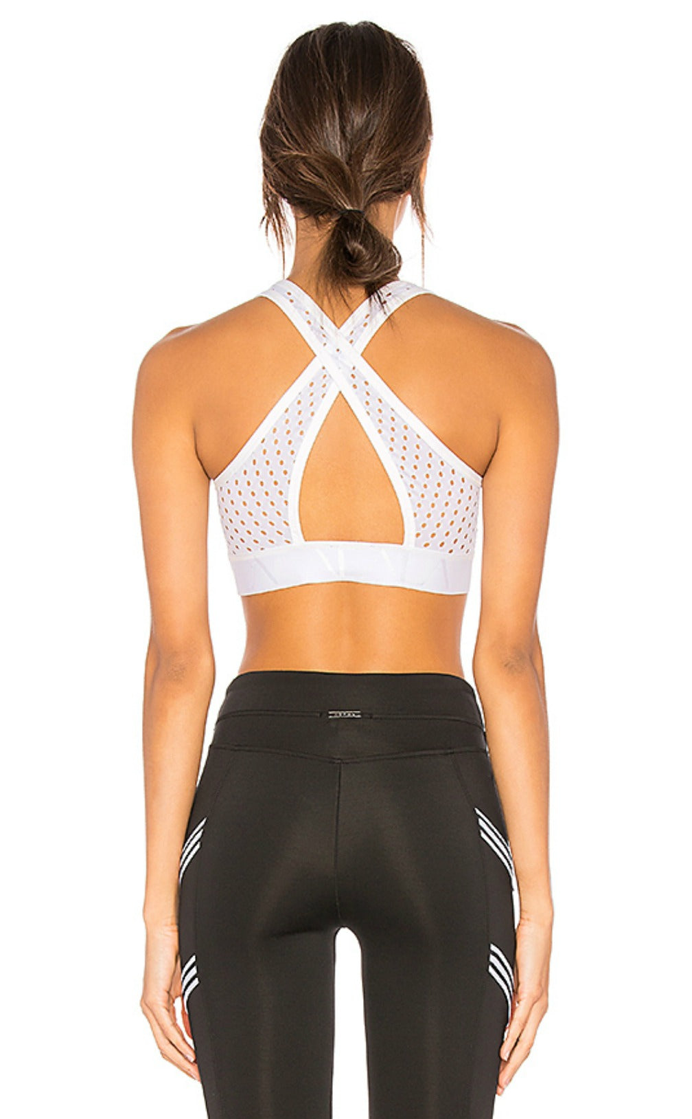 With a flattering high neck and laser cutouts the Cross Back Bra by Alala is a perfect mix of sporty and sophisticated. Super stretch design with a wide solid elastic logo underband goes on easily but stays put. Cross back styling for a sporty and secure finish.