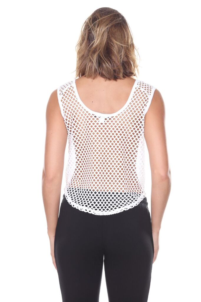 Whisper thin cotton front with a wide fishnet back make this Solow tank stand out from the crowd. Scallop hem. Loose fit and breezy, a perfect option for staying cool while looking cool. You might find yourself wearing it all day...