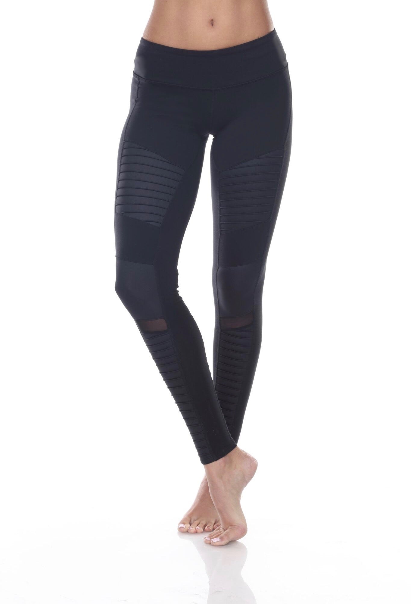 So hot! Alo Moto Leggings are, in a word, AMAZING! On-trend moto-inspired quilted line stitching at thighs and calves in mixed matte shine fabric with mesh accent detail. Hidden key/card pocket in waistband. Wide 3.5" waistband for comfort and smoothness. From the mat to what's before and after, the Moto Legging fits into your lifestyle.