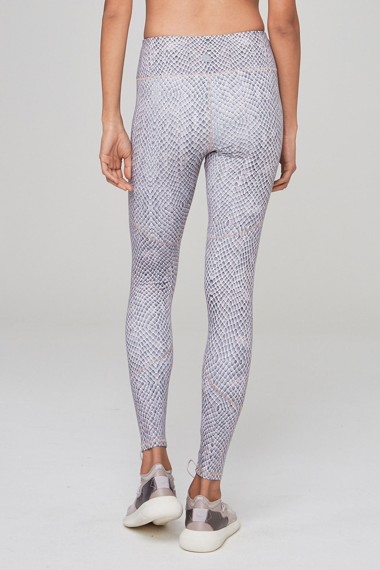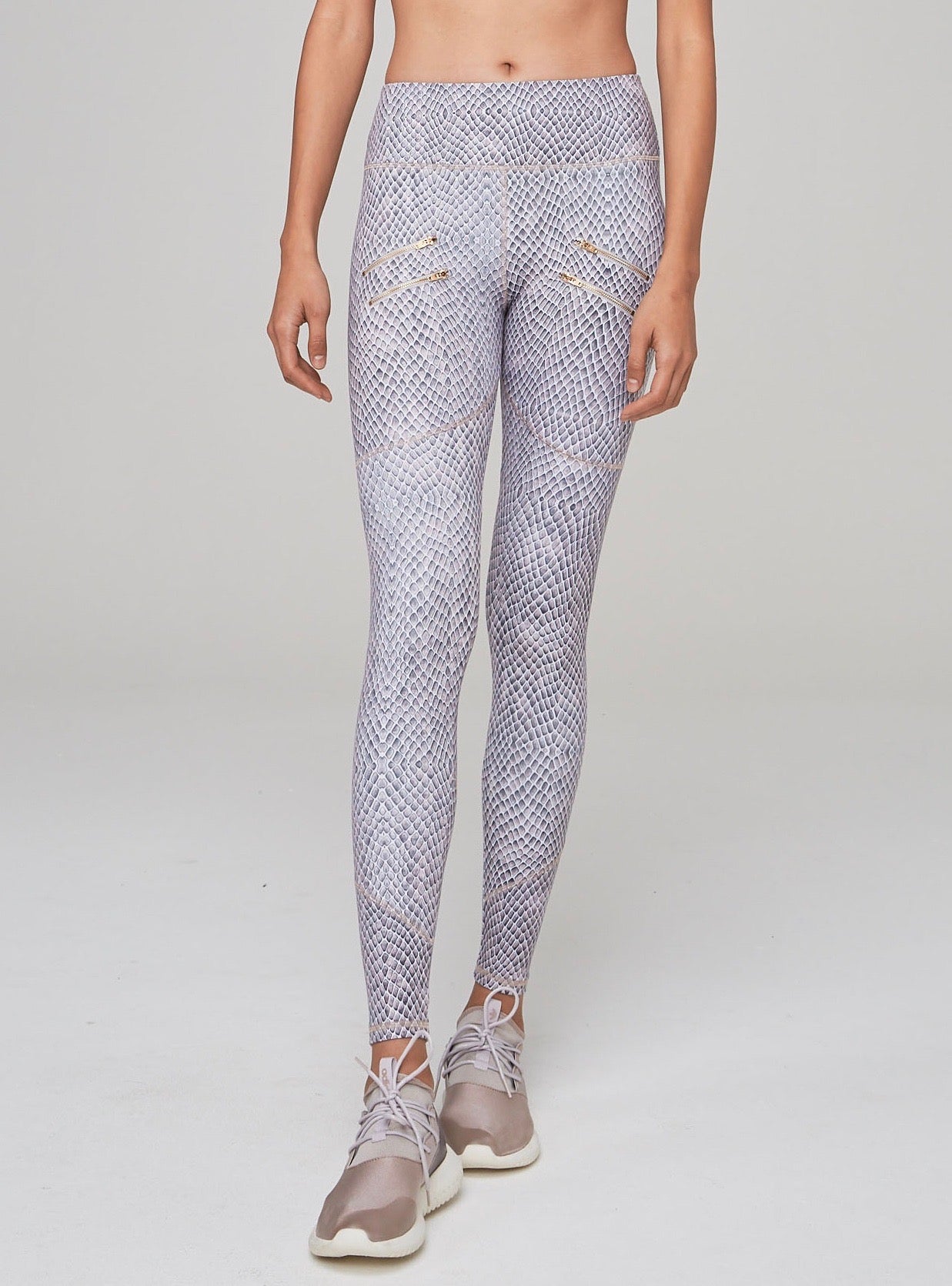 The Varley Palms Legging in a blush rattlesnake is a full length tight with sculpting leg seams and front zippers. This full coverage legging is famous for providing extra compression thanks to strong leg seams that run along thigh and calf areas. Front zip detailing add edginess to the look. Ultra high waisted for a flattering fit done in velvety soft fabric in a beautiful blush rattlesnake. So so pretty.