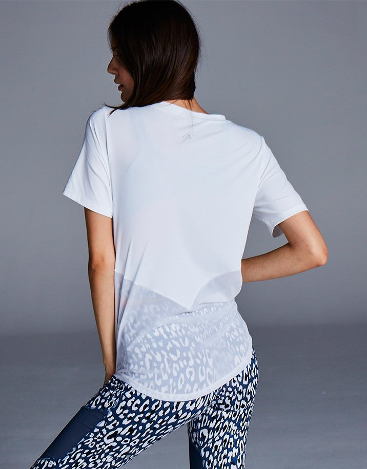 The Santar Technical Top by Varley is an ideal layering piece with great stretch, a loose fit, and mesh accents. Designed for low to high intensity workouts and layering. Light and soft, sweat wicking and quick dry fabric for keeping cool. Features a mesh high - low hem for maximum breathability and added coverage. Cropped front style pairs perfectly with high waist leggings.
