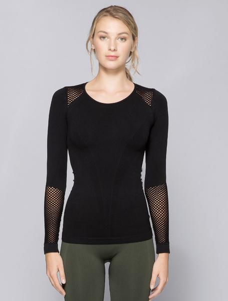 Take your basic to non-basic status with the Seamless Long Sleeve by Alala. Featuring a comfy no-seam stretch construction with just the right about of support. Banding at the sleeves and waist keeps things in place. And that fishnet mesh detail...wow...you will stay cool while looking gorgeous. This one is a must have.