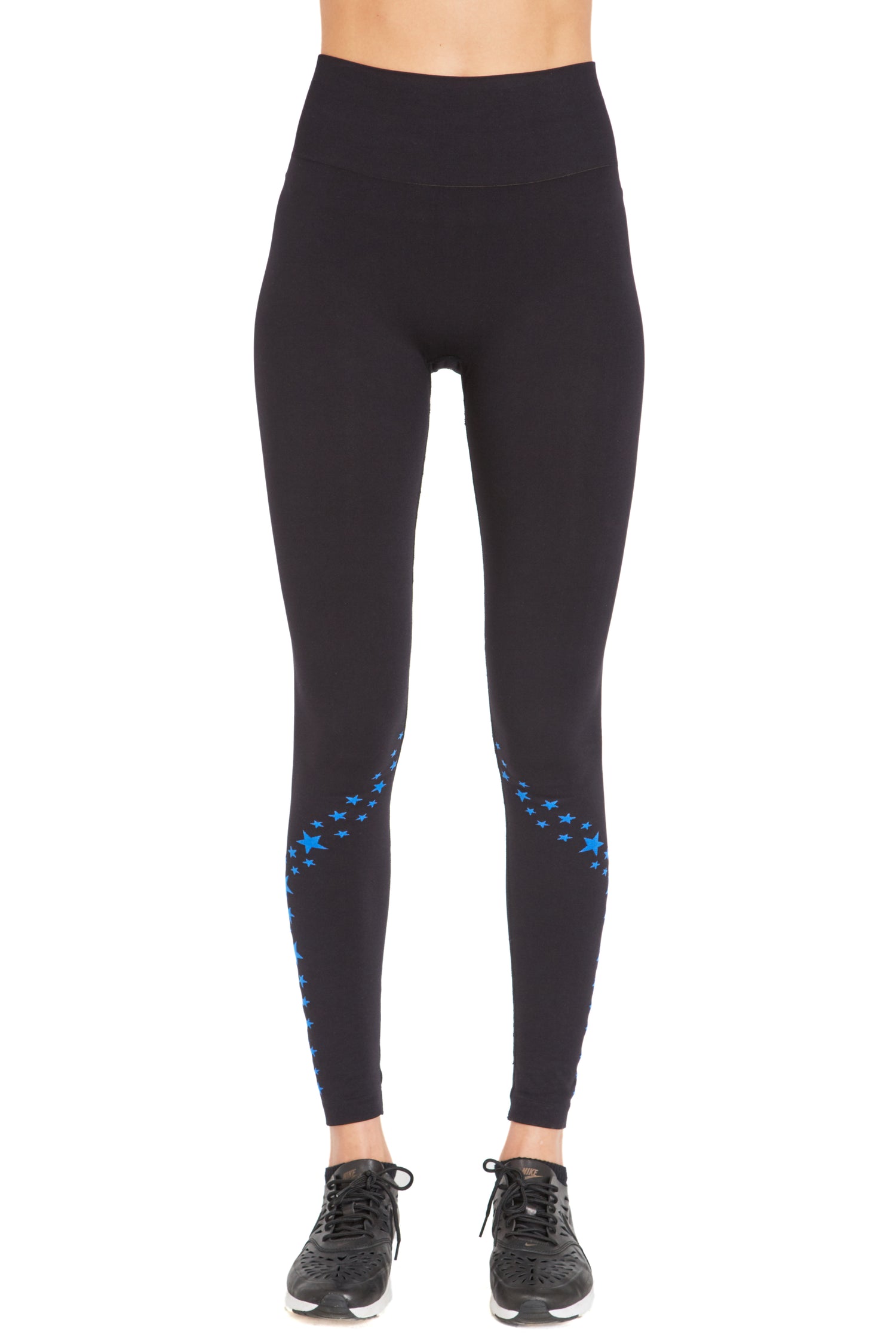 BoomBoom Athletica Seamless Star Leggings offer the best of seamless design with high waisted styling and terrific compression. Super soft fabrication with great stretch and retention. On trend and flattering high waisted styling with a reinforced waistband for smoothness. We can't resist the navy stars cascading down the legs...so cute!