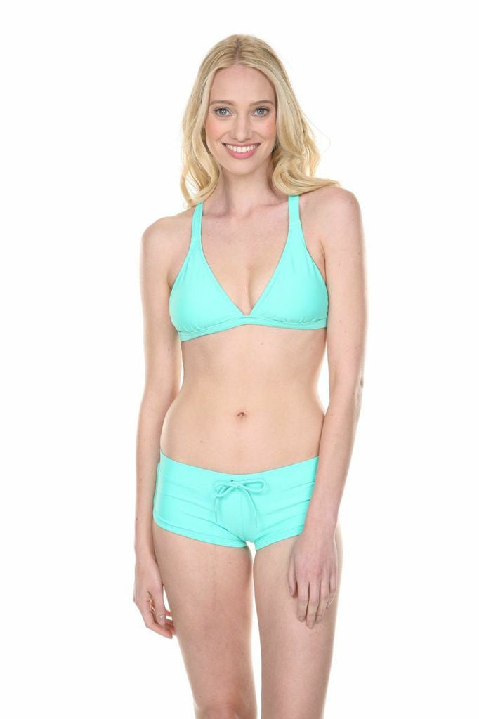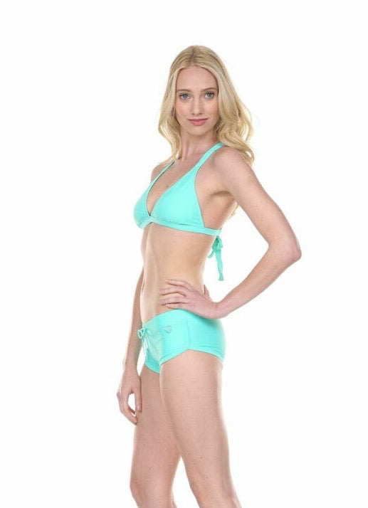 The Sidekick is a sporty swim short with an adjustable front tie. A full coverage backside keeps you keeps your booty where it should be while exposing as much as a short can without being called a bikini. Mix and match with Body Glove swim crops and sequence tops. Super soft to the touch.