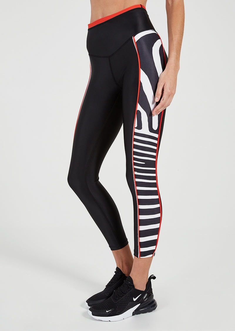 Add some luxe to your everyday with the Stealing Home Legging by PE Nation, a high-rise leg with a wide reinforced waistband and a slinky high-shine finish. The printed zebra side panels provide a flattering fit with double-piping that follows your body's natural curves. Ideal for medium impact workouts with four-way stretch for greater flexability.