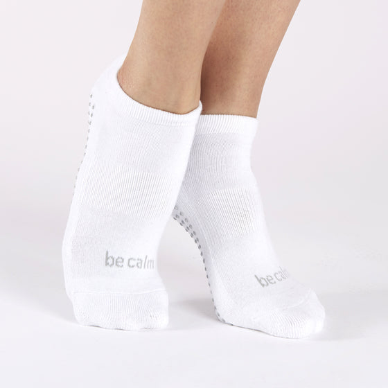 Whether it's barre, pilates, yoga or dance you will love having some inspiration on your sticky socks. Be Calm on your toes when you look down and on the bottom for glimpses in the mirror...you won't forget!