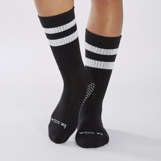 So cute and hip in a classic crew style...sticky socks with "Be Active" messaging across the toe. Features natural fine cotton yarn for sweat absorption and breathability. Elastic arch support for compression and functionality. Padded foot bed for extra cushion and comfort. Sole non-slip grips.