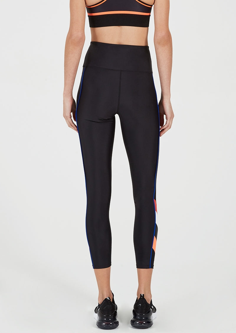 Smash your personal best with the Time Trial Legging by PE Nation, a high-performance 7/8 legging with a wide reinforced waistband for core support during tough workouts. Cut from a high-performance fabrication for a compressive fit, with contrast blue piping down the legs for a flattering finish. Featuring bold color-block stripes on the calves for the ultimate P.E statement.
