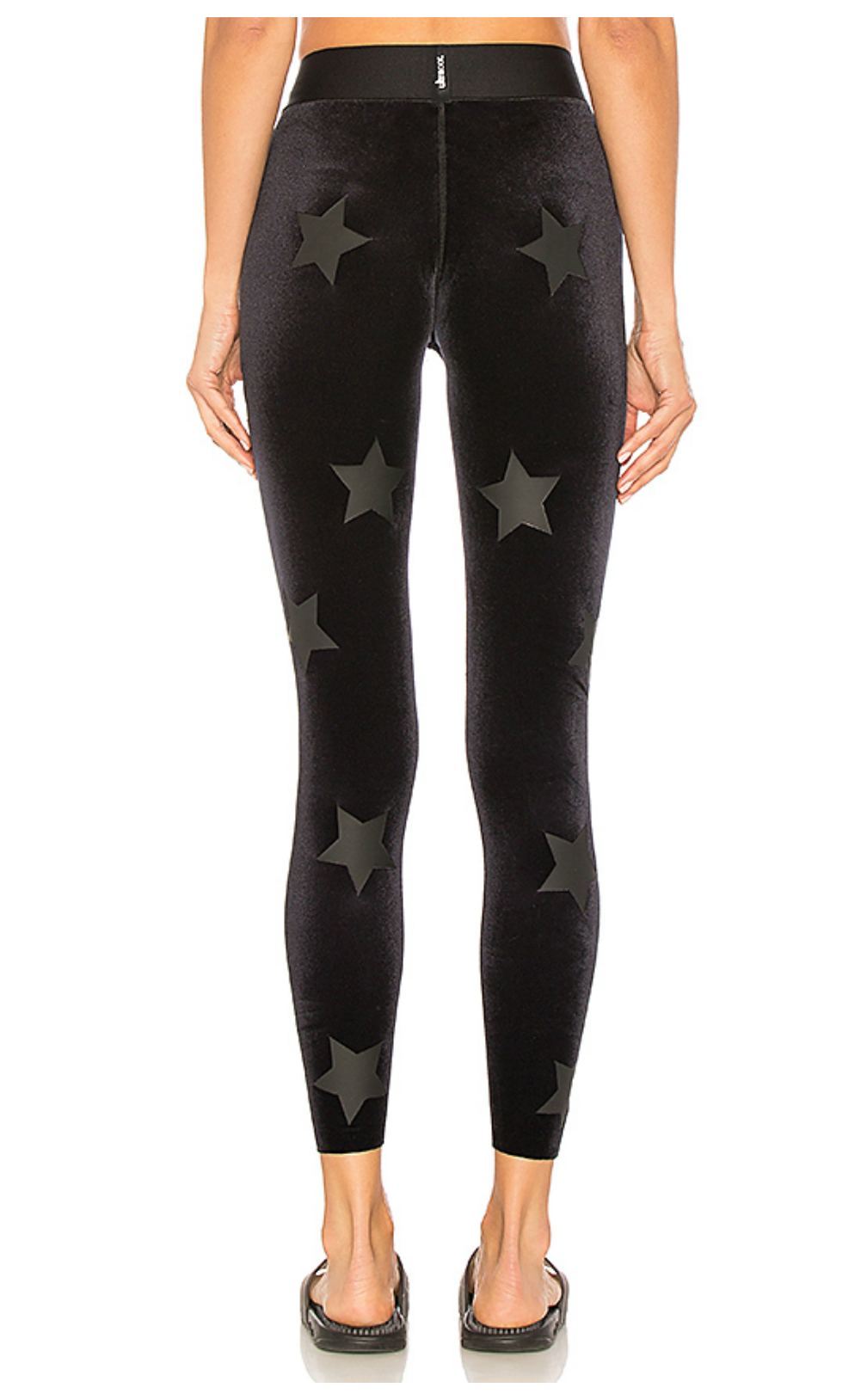 The hottest leggings on the market right now...the bestselling Knockout Leggings by Ultracor in super-luxe VELVET are a definite knockout with bonded matte black star detail. Made of high-tech, high stretch, second skin, silky-soft compression fabric coated in velvet with built-in shapeware to provide an instant butt lift. No front seam for a clean flattering fit. High-rise fit with a supportive 2" solid elastic waistband. Ankle Length. go ahead...be a star!