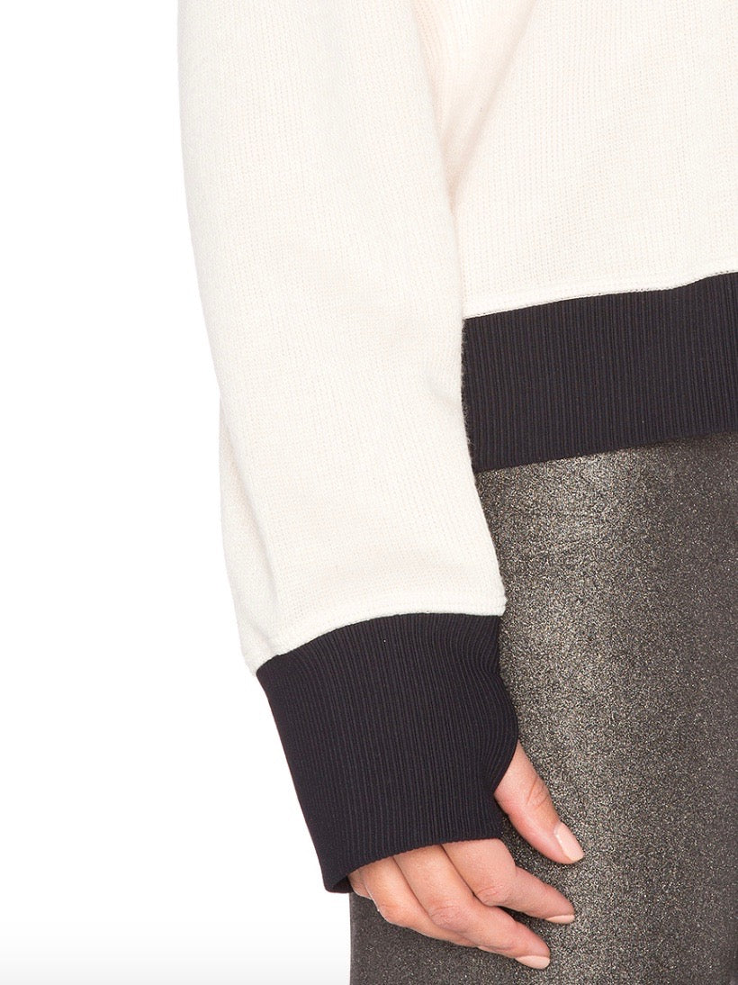 Warm and comfy ribbed knit exterior with a cozy as can be fleece interior combine forces in the Warm Up Hoodie by Vimmia. Loose and boxy fit with an overlapping open scallop detail in the back. Thickly ribbed black edging and cuffs with sporty thumbholes. Fully lined drawstring hoodie for keeping that hair safe from the elements. This one is an all day(er).