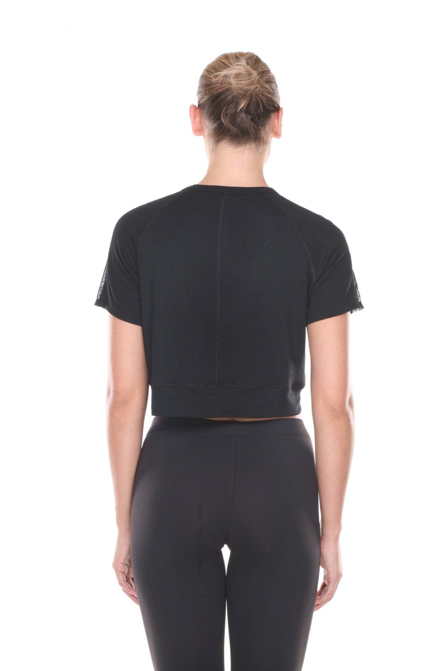 The softest smoothest knit you can imagine on this oversize loose fit top by Solow make it perfect to throw on with your favorite leggings. Mesh inserts on the sleeves and a loose fit slightly cropped cuffed bottom. It's like your favorite sweatshirt updated and gone luxury.